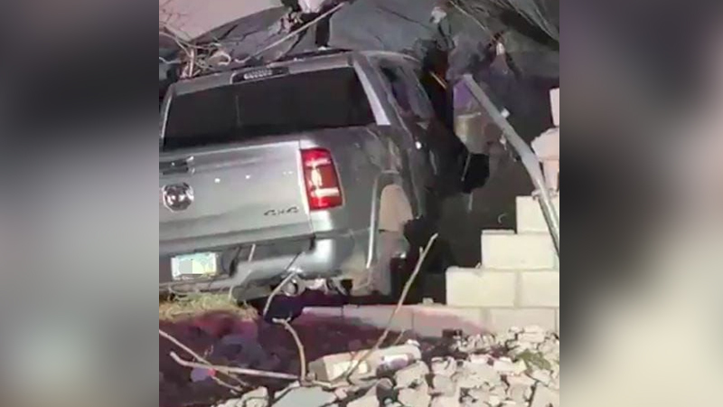 El vehículo, una pick up Dodge RAM color plata, modelo 2022, con placas del estado de Arizona, Estados Unidos, se encontraba en el interior del inmueble tras derribar la barda posterior del domicilio y un cuarto donde estaban dos personas, quienes resultaron heridas, al igual que el conductor de la unidad.