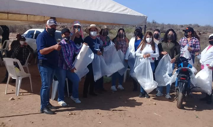 Agradeciendoles por su donación a las empresas grupo PANDO de Yavaros, grupo GEEN de ciudad Obregón y Pacifico Industrial, siendo 30 botes de plástico que servirán como depósitos de desperdicios y además 8 mil bolsas para repartirlas entre los visitantes a la playa de Huatabampito, principalmente.