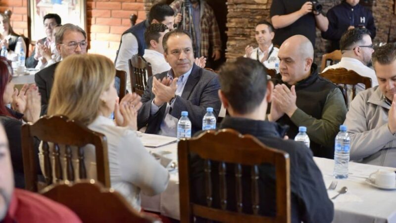 Antonio Astiazarán acudió al encuentro acompañado por Florencio Díaz Armenta, Secretario del Ayuntamiento; Manuel Emilio Hoyos Díaz, Comisario General de la Policía Preventiva y Tránsito Municipal; Ramón Corral Aguirre, Oficial Mayor; Lizette López Godínez, directora de Recursos Humanos; Luis Becerra, coordinador de beneficios del Ayuntamiento de Hermosillo y la regidora Zulma Galaz Angulo.