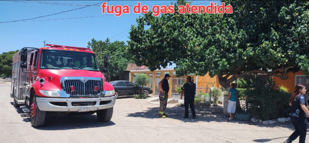 Miguel Alemán.- Ayer a las 11:50 horas, elementos de la Policía Preventiva y Bomberos atendieron un llamado de emergencia que indicaba una fuga de gas en un domicilio ubicado en las calles Vicente Guerrero y 5 de Mayo, en Miguel Alemán.