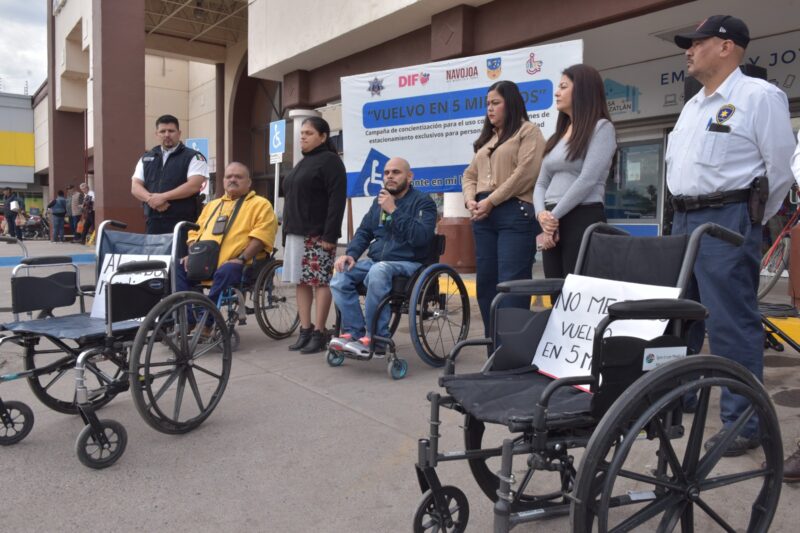 Navojoa, Sonora, 2 de diciembre 2024.- Para hacer respetar los espacios de estacionamiento vehicular destinados a personas con discapacidad fue activada hoy en Plaza Ley del Mayo la campaña “Vuelvo en 5 Minutos”, a cargo de DIF Municipal y Tránsito Municipal, en colaboración con el Consejo para Personas con Discapacidad y el grupo empresarial Ley.