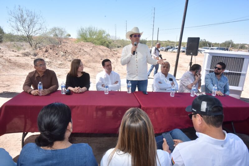 Navojoa, Sonora, 5 de marzo 2026.- La adquisición legal de 47 hectáreas de terreno para la construcción de las 4 mil 500 Viviendas del Bienestar quedó concretada, este jueves, teniendo como testigos especiales al secretario del Bienestar en Sonora, Fernando Rojo de la Vega, y el alcalde Jorge Alberto Elías Retes, quienes calificaron este avance como histórico para el municipio.