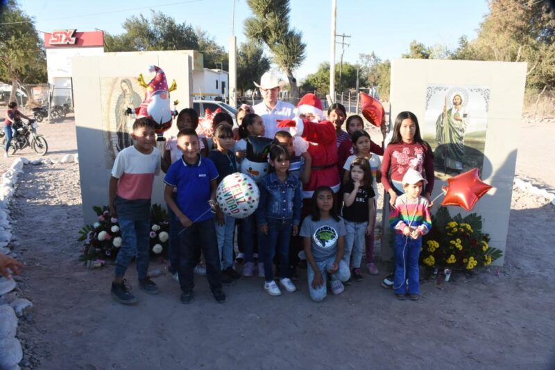 El presidente municipal, Jorge Alberto Elías Retes, lleva piñatas, dulces, pelotas y música a las familias de dicho poblado de la comisaría de San Ignacio