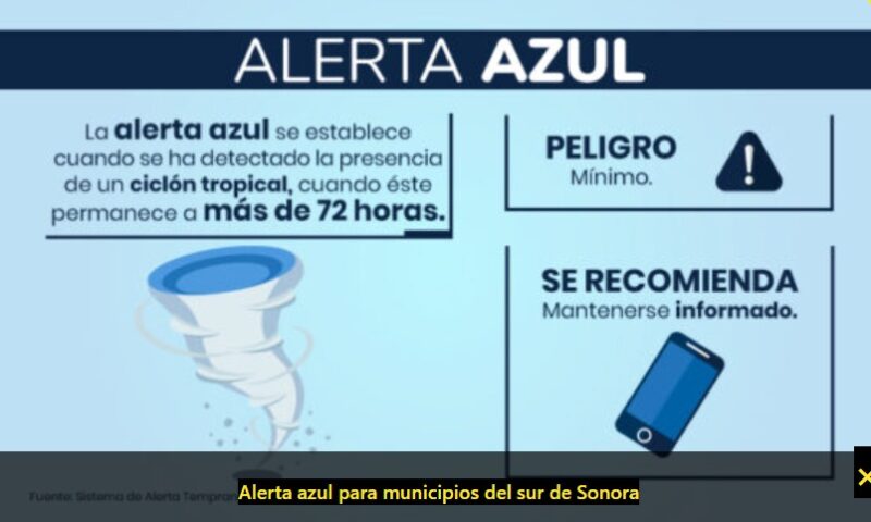 La Coordinación Nacional de Protección Civil informó esta tarde que los municipios del sur de Sonora son colocados en alerta azul ante la proximidad del Huracán Norma.