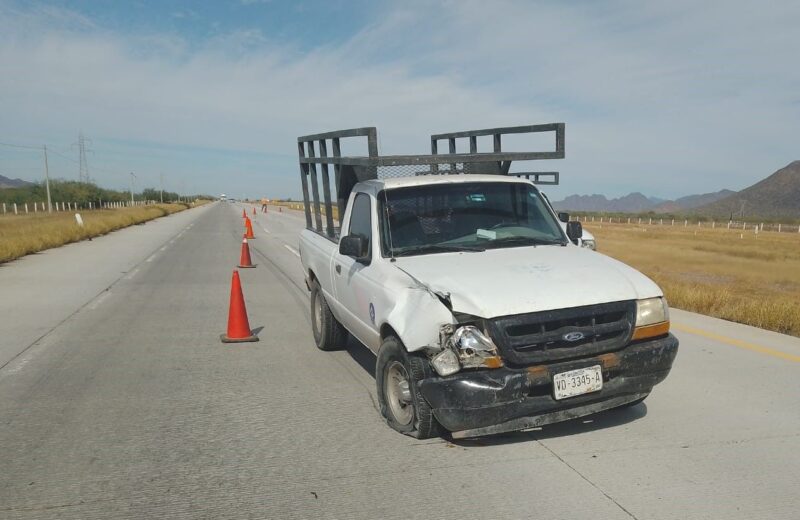 Debido a un accidente en el que participaron un tractocamión y un vehículo pick up, sin que haya lesionados, se reporta tránsito lento en el kilómetro 159 en el tramo carretero Hermosillo-Guaymas.