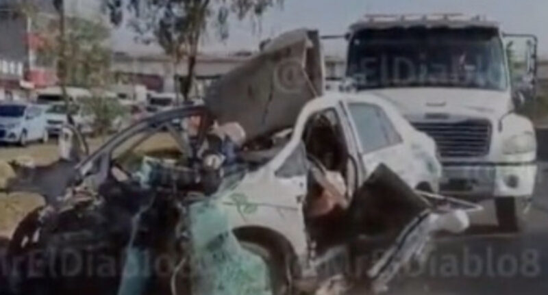 Un aparatoso choque se registró en Avenida Central, Ecatepec, Estado de México (Edomex), la mañana de este sábado 14 de octubre. El saldo fue de una persona muerta y una lesionada que quedó prensada en el automóvil.
