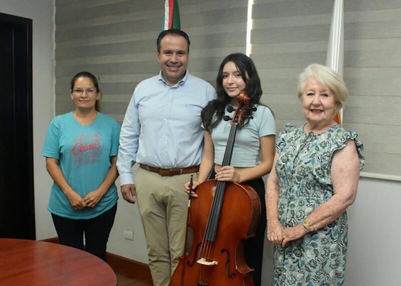 Hermosillo, Sonora; 24 de junio, 2023.- En reconocimiento al talento hermosillense, el Presidente Municipal Antonio Astiazarán entregó un apoyo económico a la estudiante Karla Robles, quién participará en el Festival Internacional de Cellos en la Ciudad de México del 30 de julio al 3 de agosto.