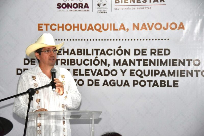 Navojoa, Sonora; a 07 de octubre de 2025. Con una inversión de más de 6 millones de pesos y más de 1,100 habitantes beneficiados, el Gobierno del Estado, a través de la Secretaría de Bienestar de Sonora, en coordinación con el Gobierno Municipal, dio inicio a las obras de rehabilitación de más de 10 kilómetros de la red de distribución, mantenimiento del tanque elevado y equipamiento del pozo de abastecimiento de agua potable en la comunidad de Etchohuaquila.