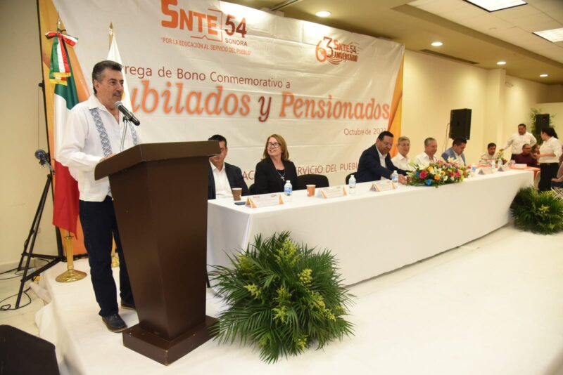 Sección 54 del SNTE, realizó la entrega de bonos conmemorativos a jubilados y pensionados.