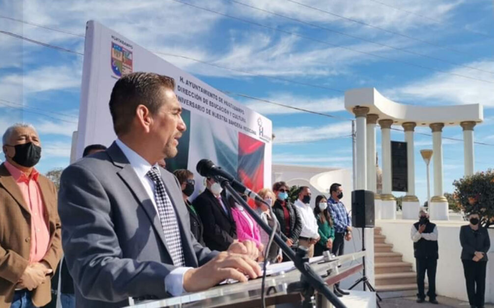 “La Bandera, emblema patrio, representa el símbolo más sagrado para los mexicanos, en ella palpitan las hazañas gloriosas, los sacrificios, la historia y las proyecciones sociales y cívicas, es uno de los símbolos patrios más significativo de nuestra nación y su día se celebra un día como hoy 24 de febrero, dijo el Municipe ante la presencia de autoridades educativas, maestros y alumnos, funcionarios municipales, la escolta oficial de Seguridad Pública, y las escoltas de CONALEP, CEUNO, COBACH, CBTis 63 y el ITHUA.