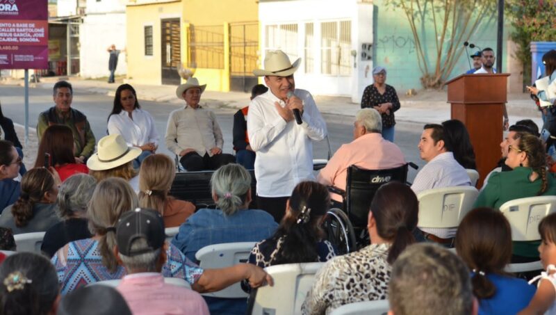 Así mismo, el titular del Ejecutivo estatal, en Navojoa, entregó la obra de pavimentación, agua potable y alcantarillado de la calle Ovidio Pereira con una inversión de más de ocho millones de pesos, esta calle, dijo, beneficia a más de tres mil personas y a niñas y niños que diariamente asisten al CAM 32; además se concluyó la obra de rehabilitación de los parques Laureles, Aeropuerto, y Tetaboca, en beneficio de mil 500, mil 200 y 500 personas respectivamente.