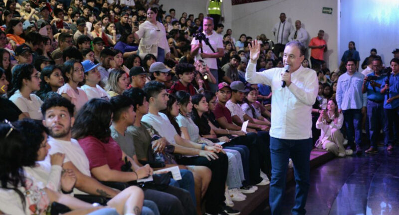 María Fernanda Urías Sánchez, estudiante de Ciencias de la Educación del Instituto Tecnológico del Estado de Sonora (Itson) campus Empalme, alentó a las y los jóvenes presentes a que sigan su formación educativa ya que, con el apoyo de becas otorgado por el gobernador Durazo, no habrá motivo para truncar sus estudios.