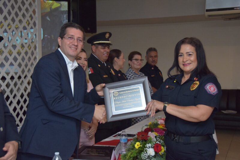 Acompañado por la presidente de DIF municipal, Luz Argel Gaxiola de Elías, el presidente municipal reconoció la capacitación del cuerpo de bomberos, a cuyos integrantes calificó como “verdaderos héroes que prestan un valioso servicio a la comunidad”.