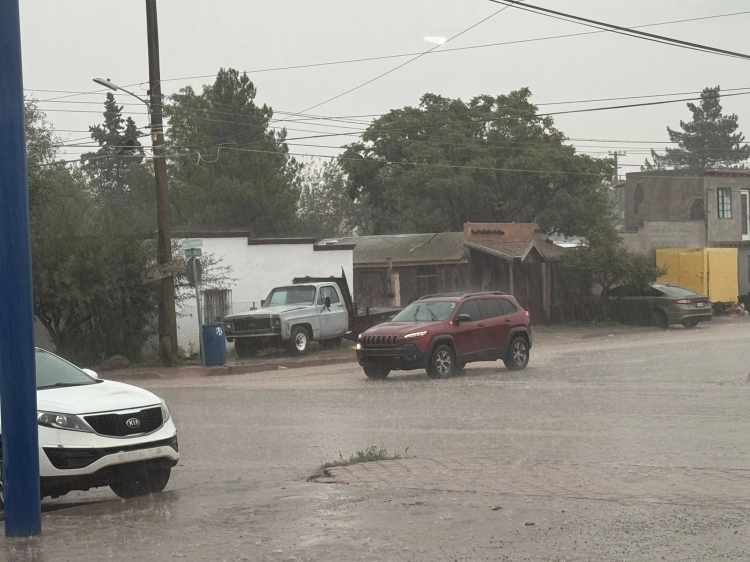 Agua Prieta, Sonora. – Un fuerte aguacero se registró la tarde de este jueves en la Colonia Ejidal, acompañado de una pequeña tormenta elecrica y acumulación de agua en diversas vialidades. El fenómeno sorprendió a los vecinos.