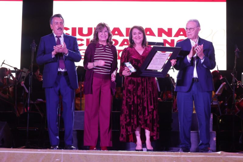 En este marco, Patiño entregó el reconocimiento a la Ciudadana Distinguida 2025, honor que este año recayó en Ana Laura Olea Ruiz, reconocida por su amplia trayectoria empresarial y por su labor al frente de la asociación civil Yo Jalo por Obregón, desde donde ha impulsado acciones en favor de la ecología y el rescate de espacios públicos. Su dedicación, esfuerzo y pasión fueron destacados como ejemplo inspirador.