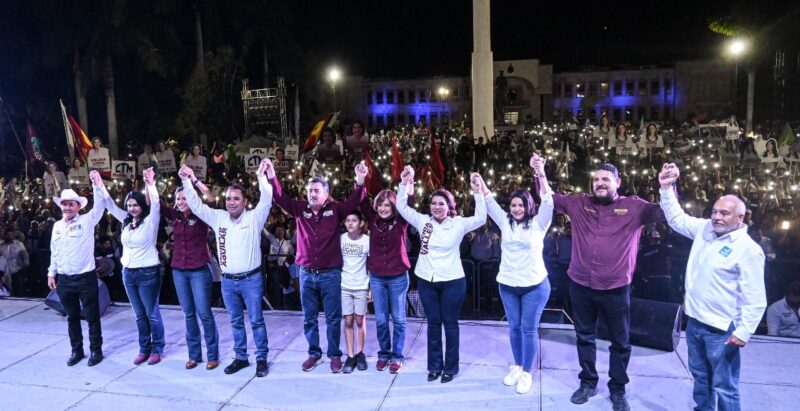 Porque ya lo estamos logrando y queremos que siga la transformación en Cajeme, el candidato Javier Lamarque Cano vistió de guinda la emblemática Plaza Álvaro Obregón en un gran cierre de campaña junto a la fórmula ganadora de la coalición Sigamos Haciendo Historia.
