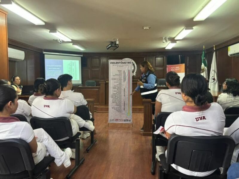 Hermosillo, Sonora; 1 de agosto de 2024.- Las y los alumnos de la Universidad Vizcaya de las Américas, recibieron capacitación sobre las acciones que realiza el Gobierno de Sonora, a través de la Secretaría de Seguridad Pública (SSP), para prevenir, atender y dar seguimiento a los casos de violencia familiar y de género que ingresan a la línea de emergencias 9-1-1.
