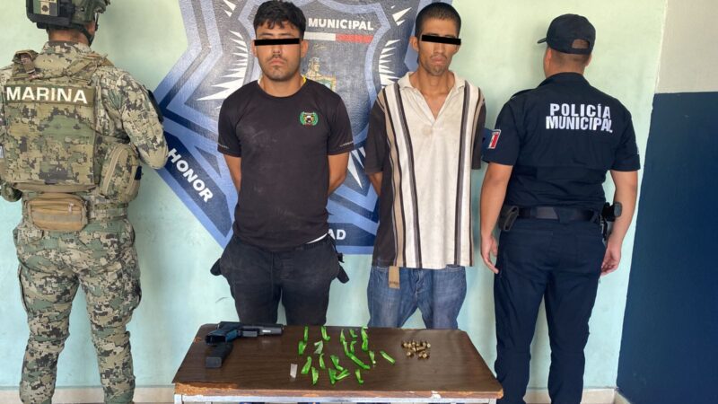 Tres personas del sexo masculino fueron capturadas durante un operativo realizado por elementos de la Secretaría de Seguridad Pública Municipal y Marina, los hechos ocurrieron en las colonias Luis Echeverría y Libertad, se aseguraron armas de fuego, cartuchos y drogas.