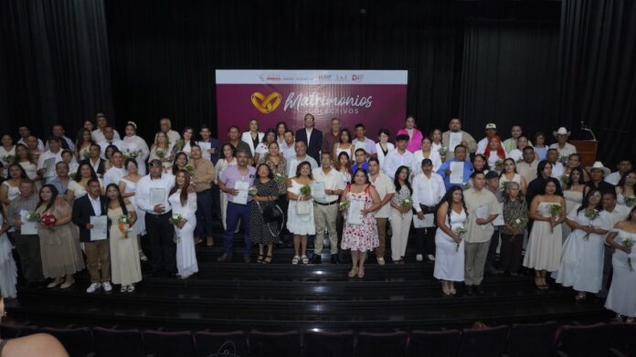 Guaymas, Sonora.- Para fortalecer el núcleo familiar, brindar seguridad y protección legal, este sábado se llevó a cabo la jornada de matrimonios colectivos gratuita organizada por el Gobierno del Estado a través de la Secretaría de Gobierno, DIF Sonora, Dirección General de Registro Civil en coordinación con el Ayuntamiento de Guaymas.