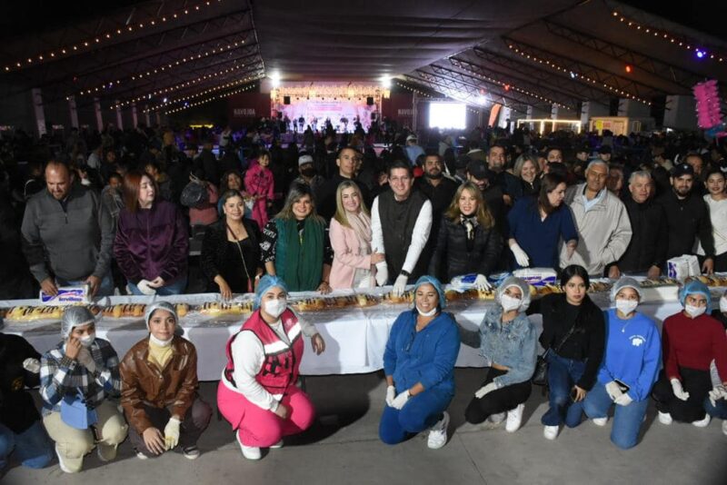 También, con el apoyo de DIF y varios patrocinadores fue posible la entrega de 3 mil 500 bolsas con dulces, y hasta se contó con la presencia de los tres reyes magos, así como de 7 mil cobijas y fue cortada una megarosca de 20 metros de largo.