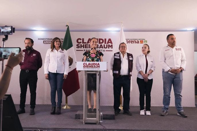 Claudia Sheinbaum estuvo acompañada por los candidatos al Senado de la República, Nora Ruvalcaba y Daniel Gutiérrez Castorena, así como por los candidatos a diputados federales; Arturo Ávila; Aldo Ruiz y Leslie Figueroa.