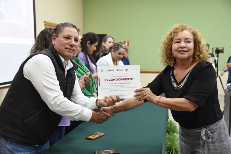 En representación del Alcalde Javier Lamarque Cano, la Jefa del Despacho Municipal, Deni Gastélum Barreras, felicitó a las mujeres que participaron en el taller y las alentó a seguir aprendiendo nuevas cosas.