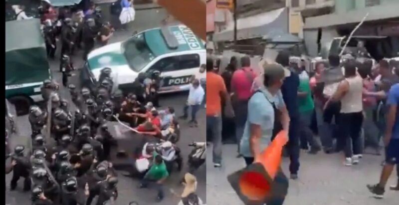 Conforme pasaron los minutos la situación derivó en agresiones por parte de los educadores disidentes, que removieron vallas, lanzaron piedras, palos e insultos a los policías.