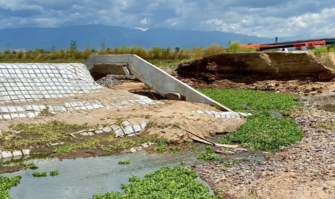 Relató que el pasado lunes, alrededor de las 18 horas, el bordo del vertedor empezó a colapsarse hasta que se venció por completo dejando un gran boquete de poco más de 20 metros de largo y unos seis metros de profundidad.