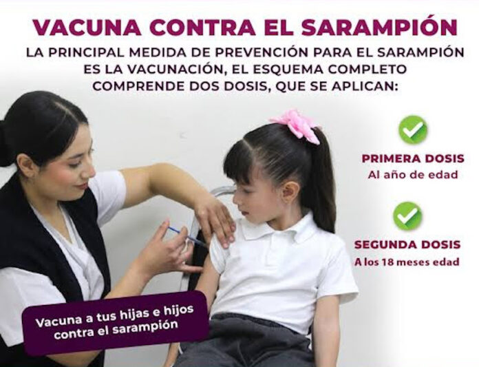 La vacunación es la única manera efectiva de evitar el contagio del sarampión y es una acción de cuidado y protección, especialmente para hijas e hijos. Hasta el momento se han aplicado 190 mil dosis de vacuna SRP y 130 mil de SR. La vacuna es gratuita, segura y eficaz, y está disponible todos los días en cualquier unidad pública de salud del estado, sin importar la derechohabiencia.