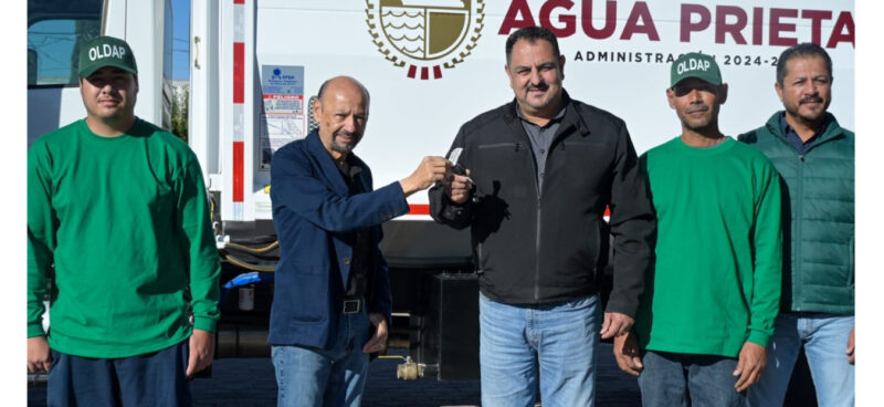 El alcalde de la ciudad de Agua Prieta, José Manuel Quijada Lamadrid, hizo entrega de la nueva unidad recolectora de basura al titular del Organismo de Limpia Descentralizado de Agua Prieta (OLDAP), Daniel López Cuevas, la cual se sumará a la flotilla para mejorar el servicio en el municipio.