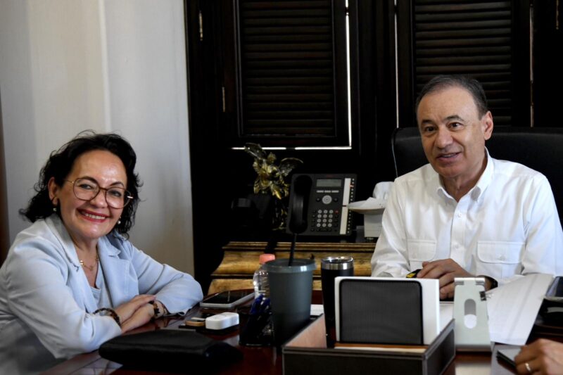 Durante un encuentro con la rectora de la Universidad Nacional Rosario Castellanos, la doctora Alma Xóchitl Herrera Márquez, y el secretario de Educación y Cultura, Froylán Gámez Gamboa, el mandatario estatal destacó que esta obra representa un avance histórico en la ampliación de oportunidades educativas para las y los jóvenes sonorenses.