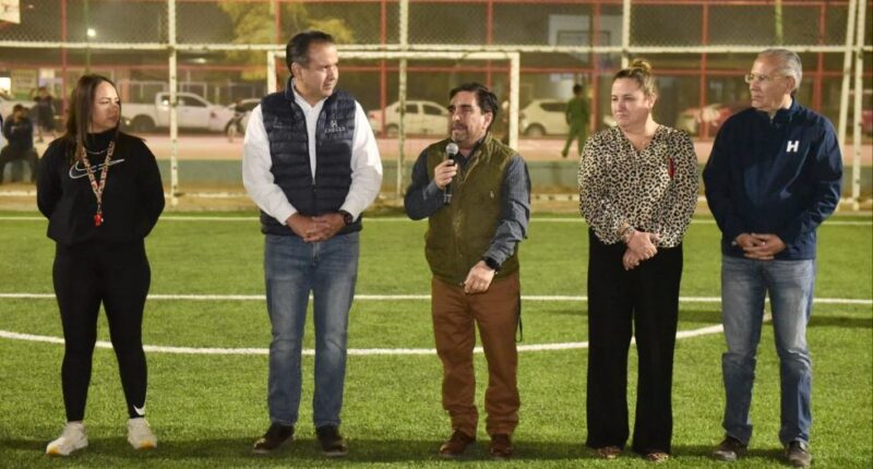 Hermosillo, Sonora; 30 de enero, 2024.- El Presidente Municipal, Antonio Astiazarán constató el avance del 70% de rehabilitación de la unidad deportiva en la colonia Norberto Ortega, en la que diariamente se entrena fútbol.