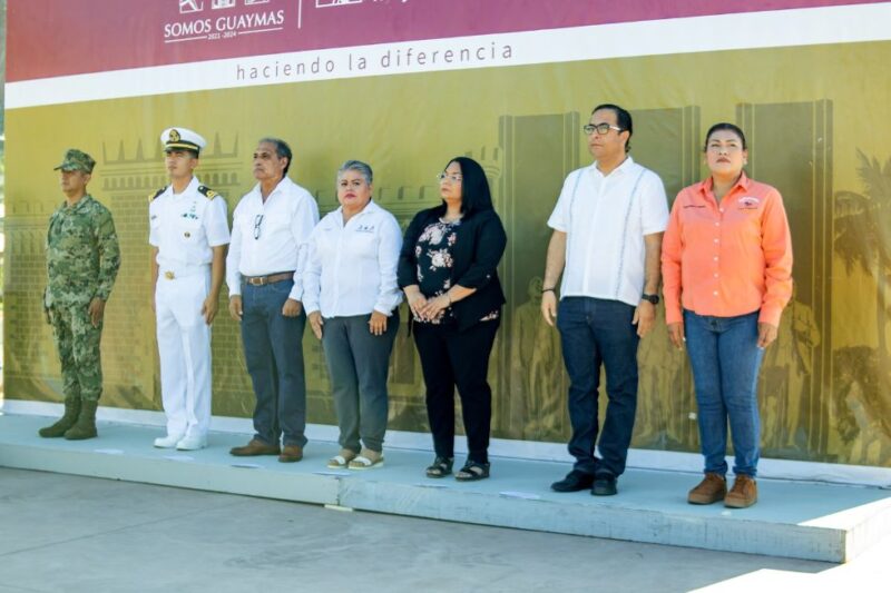 Los honores correspondientes fueron a cargo de la escolta Bandera y Banda de Guerra de la Sexta Región Naval y la entonación del Himno Nacional estuvo a cargo del maestro Arturo Altamirano Pillado, quien acompañó al piano al maestro Luis Manuel Castillo Pérez para la interpretación de la “La Barca de Guaymas”.