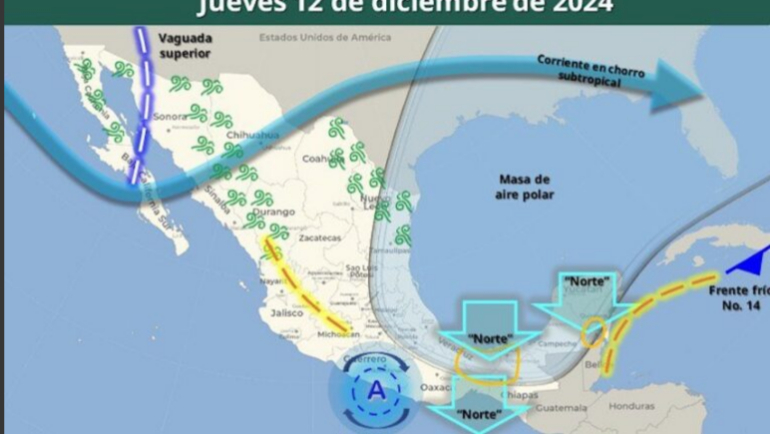 Durante hoy una vaguada polar en interacción con la corriente en chorro subtropical generará ráfagas de viento de 40 a 60 kph sobre el norte y oriente de la entidad. A su vez, cielos parcialmente nublados sin probabilidad de lluvia y un ambiente muy frío durante la madrugada y noche con temperaturas mínimas desde los -10°C a -5°C en regiones altas montañosas del nororiente y oriente, de 0°C a 5°C sobre el norte; de 5°C a 15°C sobre el centro y noroeste; de 7°C a 15°C sobre el sur del estado.