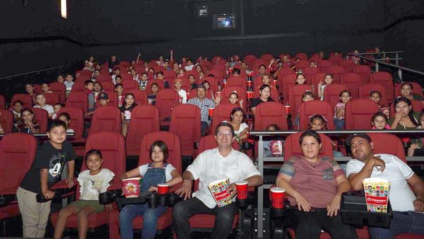 En el cine recibieron refrescos y palomitas gratuitamente y por algunos minutos el alcalde los acompañó en la proyección de la cinta.