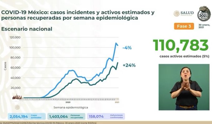 En conferencia de prensa, el director general de Promoción de la Salud, Ricardo Cortés Alcalá, informó que hay 110 mil 783 casos activos; asimismo, agregó que hay un millón 403 mil 064 personas que se han recuperado del virus.