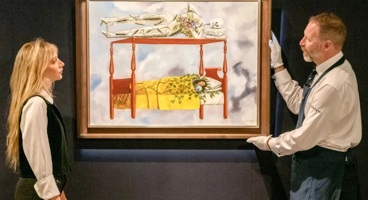 La pintura de Kahlo durmiendo en una cama, titulada El sueño (La cama), superó el récord de Jimson Weed/White Flower No. 1 de Georgia O’Keeffe, que se vendió en Sotheby’s por 44.4 millones de dólares en 2014.