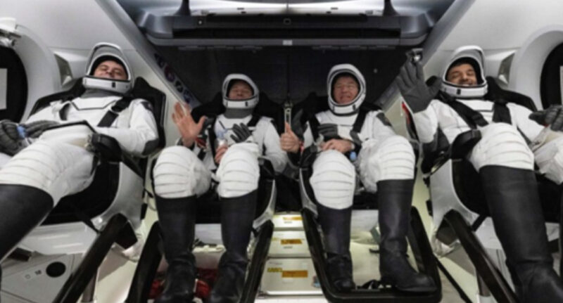 En su interior se encontraban los astronautas Stephen Bowen y Warren “Woody” Hoburg, ambos de la NASA; el ruso Andrei Fedyaev y Sultan al Neyadi, de Emiratos Árabes Unidos, la primera persona árabe en pasar un tiempo prolongado en órbita.