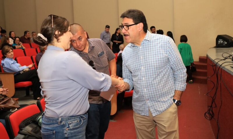 Acompañado por la Secretaria del Ayuntamiento Angélica Burgos Garay y el Secretario de Infraestructura, Desarrollo Urbano, Obras Públicas y Ecología, Jorge Medina Esqueda y por el titular de Planeación del Desarrollo Javier Villanueva López, el Presidente Municipal tomó la palabra en el foro y dijo que hacer conciencia es la parte más importante del proceso del cuidado y preservación del entorno ecológico.