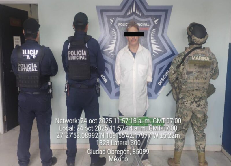 En otro hecho, en la colonia Francisco Eusebio Kino, fue detenido un individuo identificado como Fermín Lorenzo “N.”, de 53 años, a quien se le aseguraron 180 envoltorios con una sustancia granulada al tacto de color blanco, con características similares a la droga conocida como “cristal”, por lo que quedó detenido por la probable comisión del delito contra la salud.