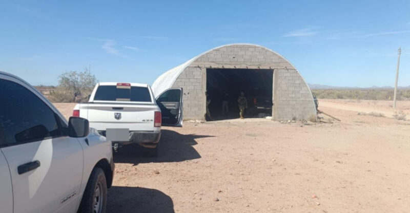 En un operativo de patrullaje e investigación en el Ejido Victoria, ubicado en la localidad de Puerto Libertad, en el municipio de Pitiquito, elementos de la Secretaría de Marina (SEMAR) y de la Agencia Ministerial de Investigación Criminal (AMIC) detectaron una construcción tipo búnker, donde aseguraron cinco vehículos (cuatro de ellos con reporte de robo), armas de fuego y equipo táctico.