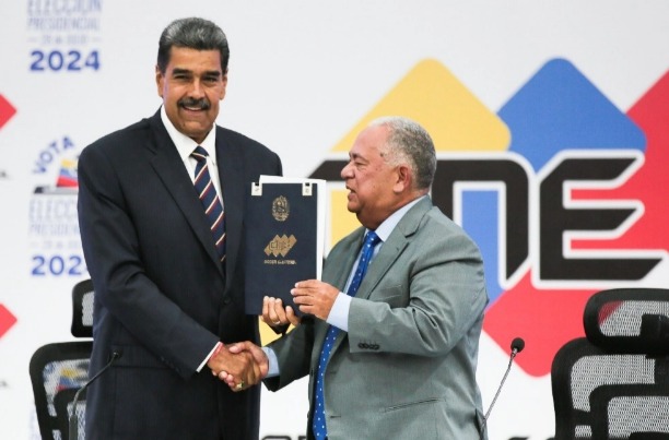 Antes de su intervención, el presidente del CNE, Elvis Amoroso, proclamó a Maduro presidente relecto para el periodo 2025-2031, y aseveró que los venezolanos expresaron su voluntad absoluta, eligiendo presidente constitucional