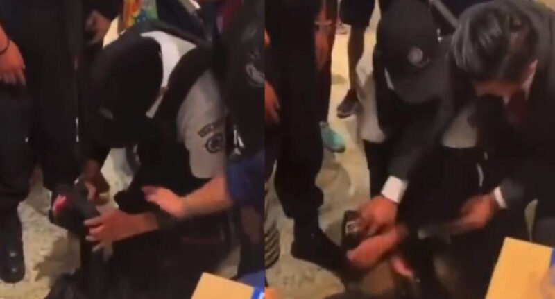 En la red social X circuló el material en el cual se mira a un trabajador uniformado someter a un canino de la raza pitbull, al cual le toma el cuello para envolverlo con un cinturón hasta que le provoca un chillido de dolor.
