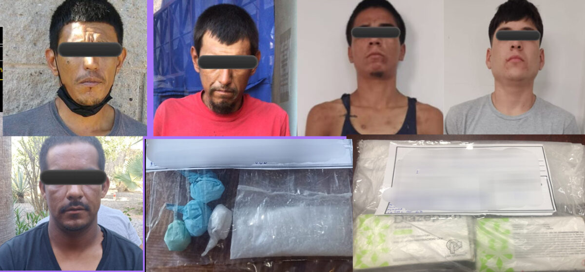 Durante los operativos y patrullajes en esa zona se arrestaron a Óscar «N», Aarón Osiel «N»,José Ángel «N», Manuel Alejandro «N», Sergio Aníbal «N» de 32, 35, 38, 19 y 19 años de edad respectivamente, en posesión de narcótico al parecer cristal.