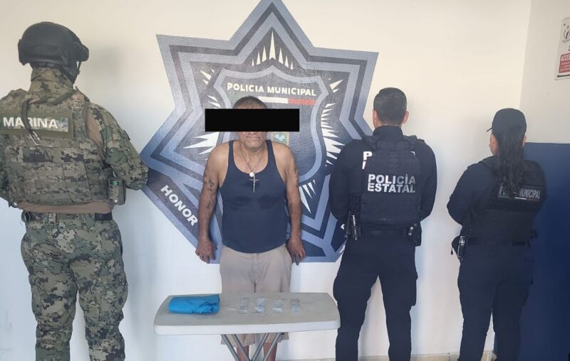 En atención a un incidente de alto impacto registrado en la colonia El Rodeo, autoridades de la Policía Municipal, Policía Estatal y Marina, lograron la detención de una persona en presunta posesión de dosis de droga.
