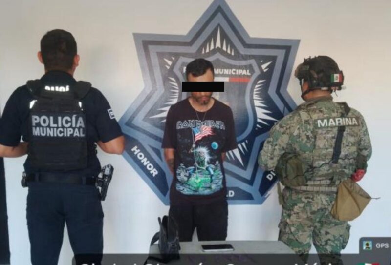 Elementos de la Secretaría de Seguridad Pública Municipal (SSPM) y Marina realizaron la detención de un hombre en posesión de varios envoltorios con una sustancia con características similares a un narcótico, durante un recorrido de vigilancia y prevención del delito en la colonia Benito Juárez.