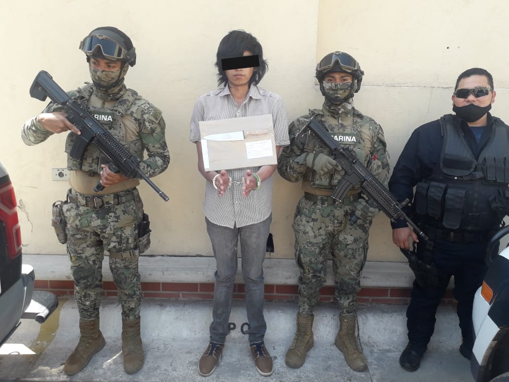 El sujeto fue capturado a las 11:00 horas cuando los agentes de la Policía Municipal en coordinación con la Secretaría de Marina realizaban recorridos de vigilancia, por la calle Pesqueira entre Ramón Guzmán y California, donde los elementos observaron al presunto escandalizando en la vía pública.