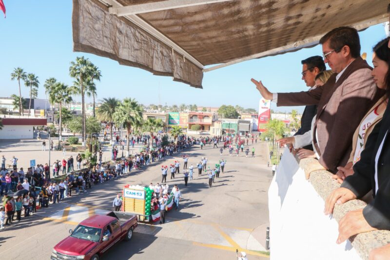 Navojoa, Sonora, 24 de febrero 2026.- En medio de un ambiente de alegría, completo orden y tranquilidad, los navojoenses disfrutaron este martes del desfile patrio por el Día de la Bandera, fiesta cívica presenciada por el alcalde Jorge Alberto Elías Retes, acompañado de su esposa y presidenta del DIF, Luz Argel Gaxiola de Elías, regidores y funcionarios del gabinete municipal.