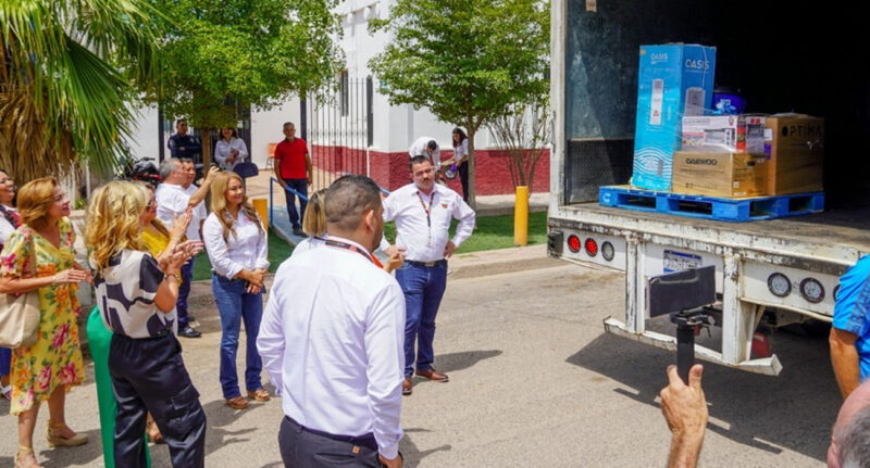 En la ceremonia de entrega-recepción del equipo donado asistieron la directora de DIF Navojoa, Janeth María Padilla Yépiz, y la regidora Martha Elena Armenta Tejeda; así como Heberto Borbón Valenzuela, gerente de Ley Plaza del Mayo, y Ángel Aguilera, gerente de Distrito de la compañía.