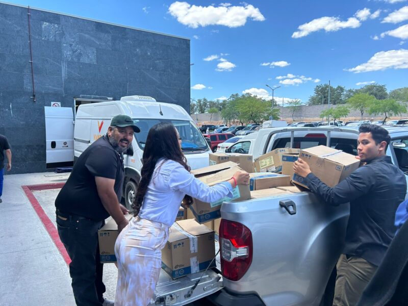 Nogales, Sonora.- Como resultado de los convenios de colaboración existentes entre el Gobierno de la Ciudad y el hospital del Instituto Mexicano del Seguro Social (IMSS), la Dirección de Salud Municipal a cargo de Nicole Salazar Peregrina entregó a esa institución de salud un total de 70 cajas que contienen material para realizar diálisis a los pacientes que padecen insuficiencia renal crónica.